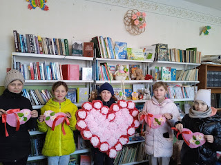 Чудові валентинки, виготовлені руками читачів, прикрасили цього дня і бібліотеку села Федорівка.