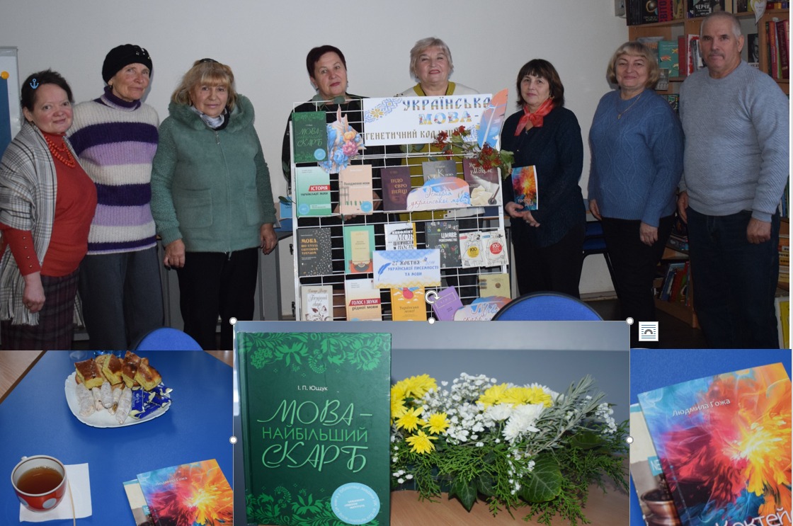 В бібліотеці села Качурівка розгорнута книжкова виставка "Нас єднає мова" та підготовлений мовний колаж "Рідна мова - серця мого подих".