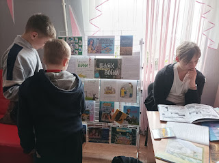 Непросту, але дуже важливу розмову ведуть з дітьми бібліотекарі центральної дитячої бібліотеки, пояснюючи те, що відбувається в нашій країні зараз, розповідають про битву за свободу і героїв, які щодня захищають наше небо, біля книжкової виставки «Шлях українського воїна».