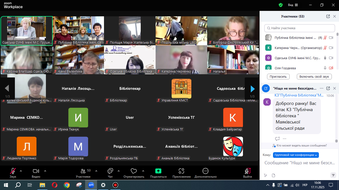 17 листопада центральна бібліотека КУ «Публічна бібліотека ім. Євгена Чикаленка Куяльницької сільської ради» стала учасницею обласного семінару "Ніщо не мине безслідно: краєзнавство у період війни". До семінару підключилось біля 60 чоловік.