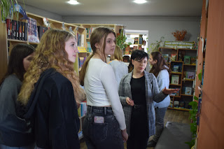 Бібліогідом вже кілька років поспіль виступає заступник директора комунальної установи Людмила Бензар. ЇЇ можна слухати не втомлюючись. Ретельно продумана розповідь знайомить не тільки із структуро бібліотеки, а вдало переплітається з історією нашого краю, з цікавими розповідями про відомих авторів, які мають відношення до бібліотеки і нашого міста, нашої громади.